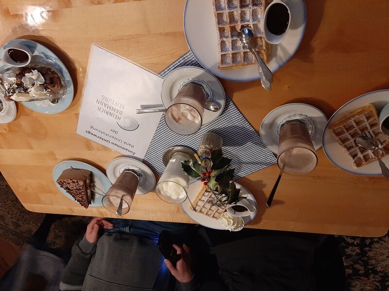 Der Nachmittag bot Gelegenheit zu einem langen Strandspaziergang – bevor wir uns dann im „Lütje Teehuus“ aufwärmten und mit Waffeln und Kuchen für den nächsten Programmpunkt stärkten: wir waren während des Miteinanders auf die Idee gekommen, auf Instagramm einen Adventskalender anzubieten – und dafür wurden nun Ideen zusammengetragen und Aufgaben verteilt, bevor es dann abends wieder zur Fähre und damit zurück nach Norddeich ging.
